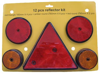 Contient 4 réflecteurs triangulaires rouge 160mm + 4 réflecteur ronds orange d.60mm + 2 réflecteurs ronds rouge d.85mm